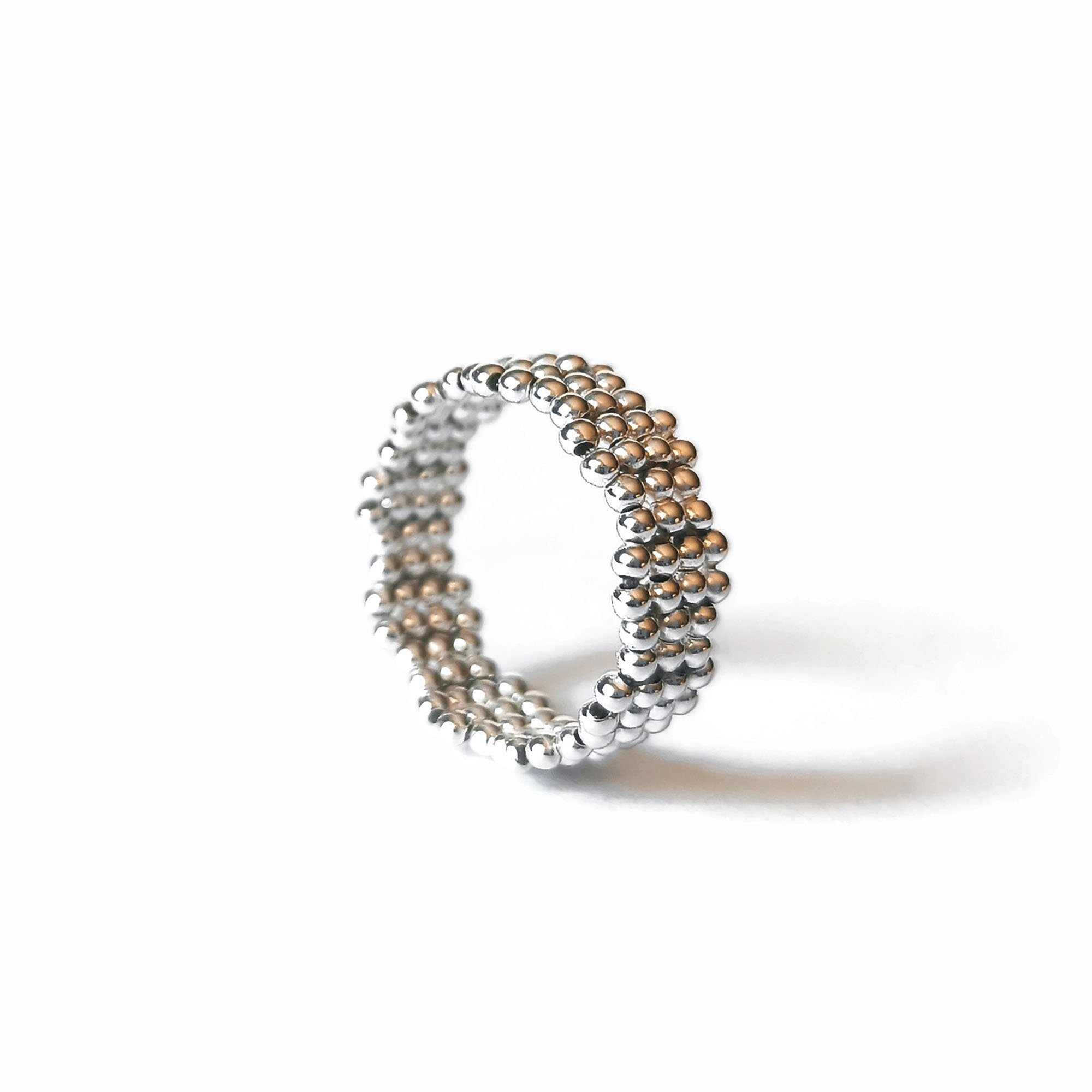 Faite main avec des micro-perles en argent 925 de 2 mm, cette élégante bague au style géométrique est facile à porter.