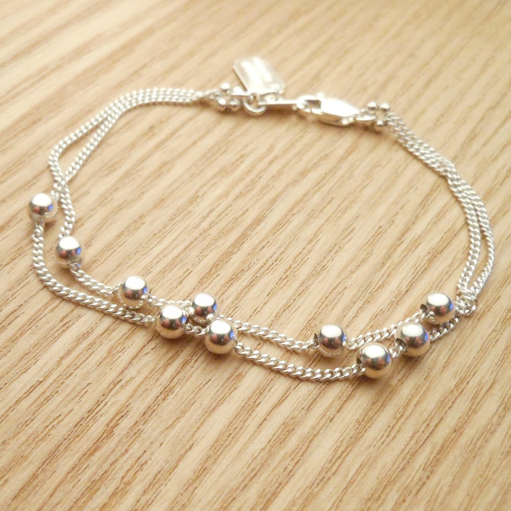Ce ravissant bracelet femme "Baltic" se compose de deux chaînes en argent 925 entrelacées, ornées de perles de 4 mm qui glissent gracieusement le long des mailles. Cette création raffinée allie l'élégance intemporelle des bijoux en argent à une touche d'originalité moderne pour un style affirmé en toute simplicité.