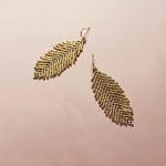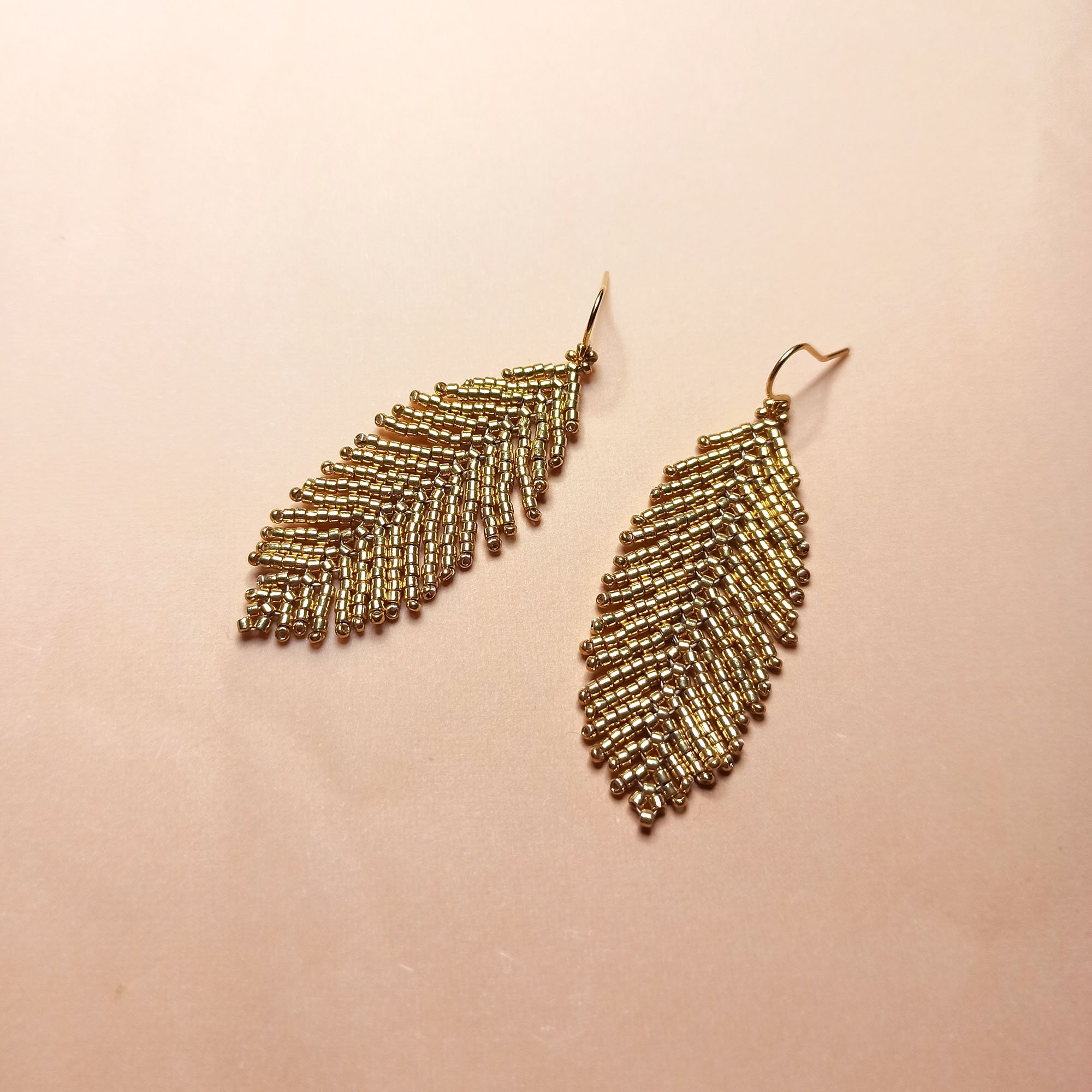 Boucles d'oreilles dorées plume en perles de verre et monture plaquée or