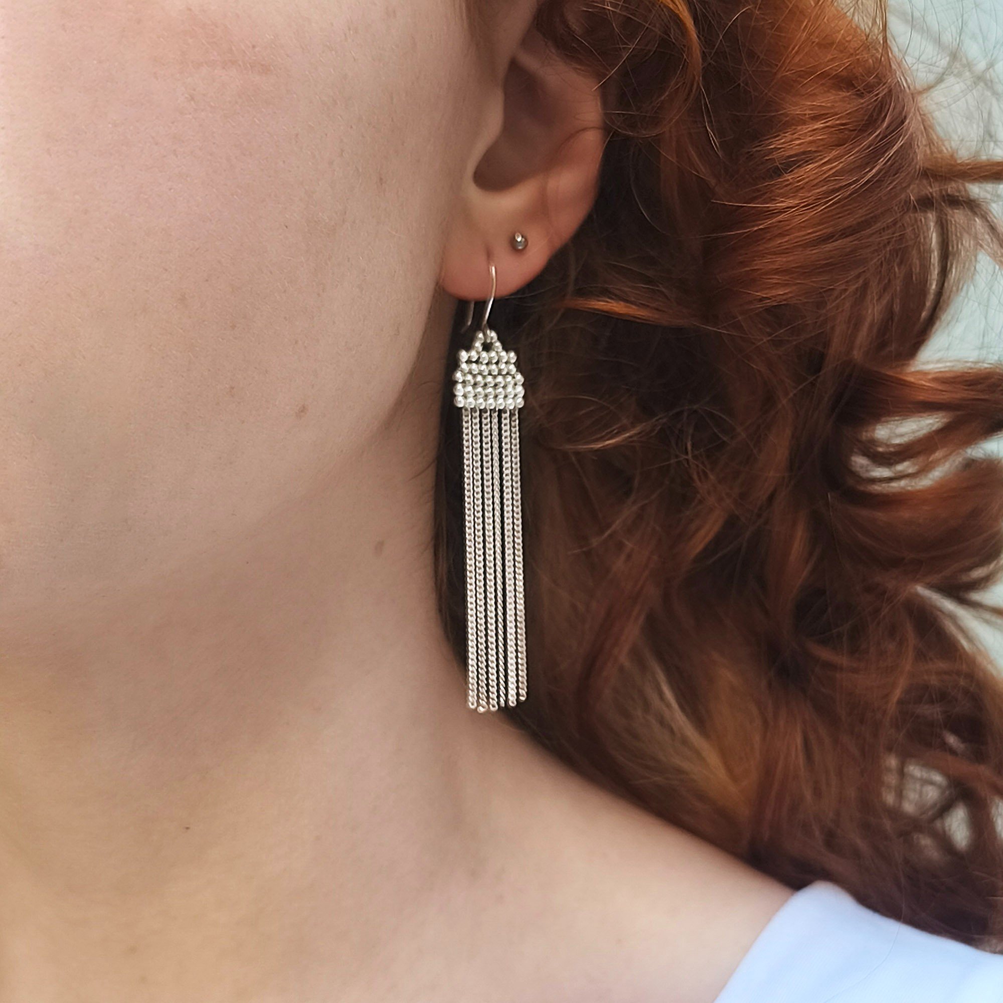 Upgradez votre look avec ces boucles d'oreilles à franges en argent, délicates et affirmées.